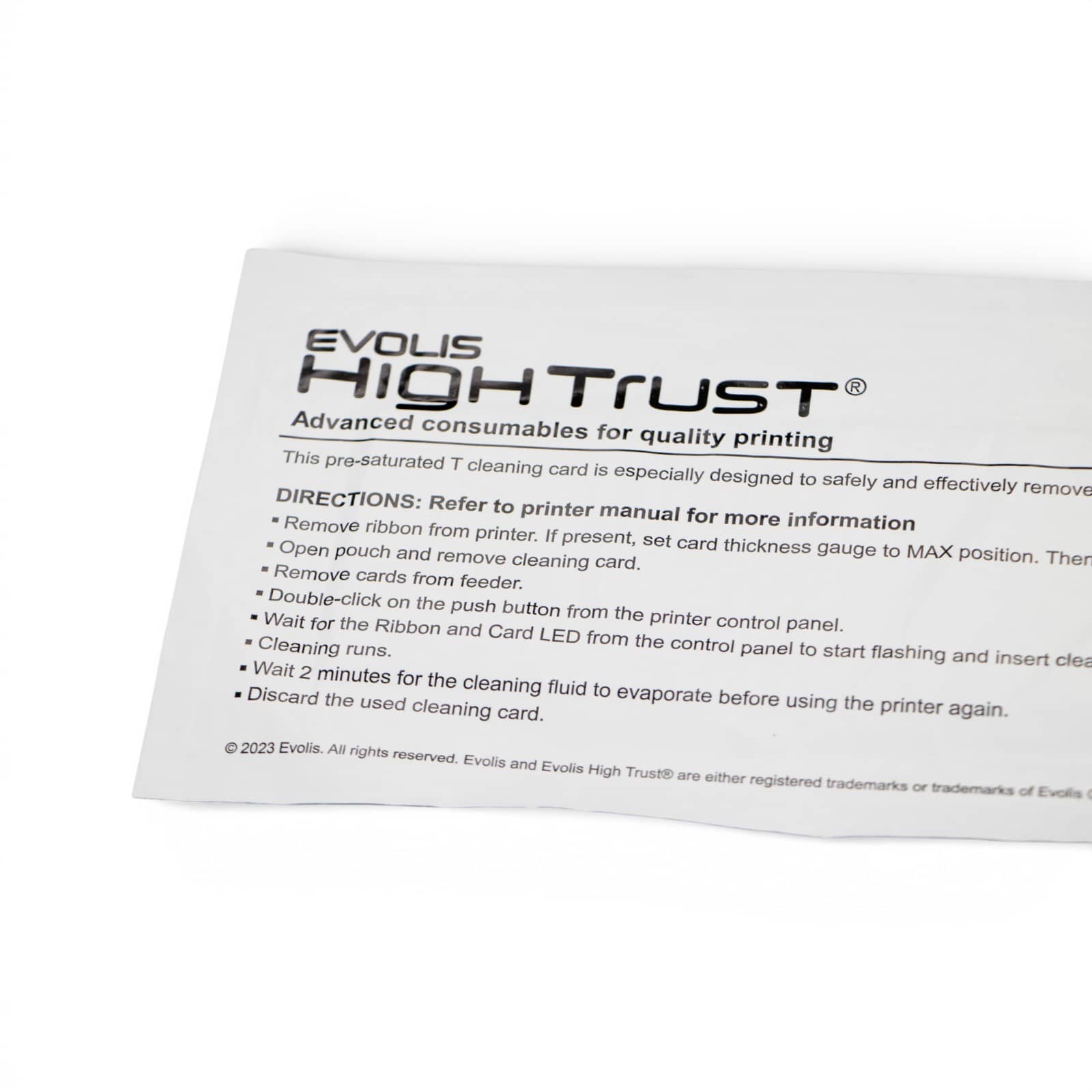 Keep your Evolis ID card printer performing at its best with the Evolis ACL002 advanced cleaning kit. T-cards, adhesive cards, cleaning pen, and 60 lint-free wipes for a thorough, safe clean.